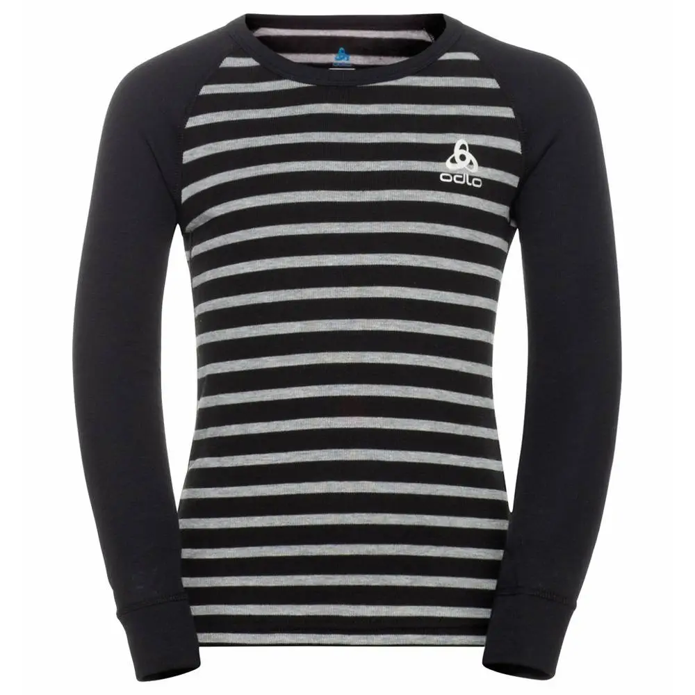 Underwear Shirt ODLO Active Warm Eco Kids Stripes BL Top Crew Neck LS Black/Grey Melange – 2022/23